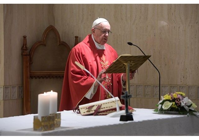 “E por que esta humildade é necessária? Justamente porque nós levamos avante um anúncio de humilhação, de glória, mas através da humilhação. E o anúncio do Evangelho sofre a tentação: a tentação do poder, a tentação da soberba, a tentação da mundanidade, de tantas mundanidades que existem e nos levam a pregar ou a recitar; porque não é pregação um Evangelho aguado, sem força, um Evangelho sem Cristo crucificado e ressuscitado. E por isso Pedro diz: ‘Cuidado…o inimigo de vocês, o diabo, assim como um leão faminto circula buscando alguém para devorar. Resistam, firmes na fé, sabendo que os mesmos sofrimentos são impostos aos seus irmãos espalhados pelo mundo’. O verdadeiro o anúncio do Evangelho sofre a tentação”.